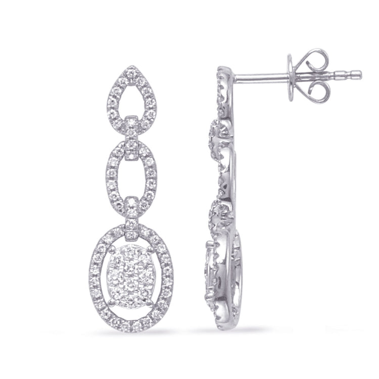 This Earring is available in 14K White Gold. There are a total of 126 stones. There are Rounds with a total carat weight of 0.45 set in a Prong Set setting.