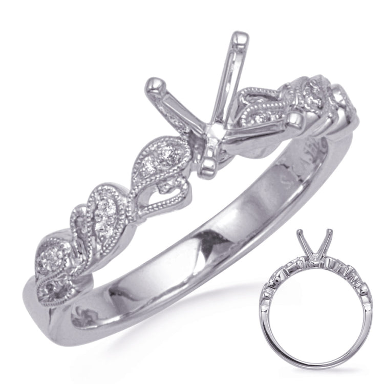 This engagement ring is available in 14K White Gold. There are a total of 12 stones. There are Rounds with a total carat weight of 0.06 set in a Micro Prong setting.