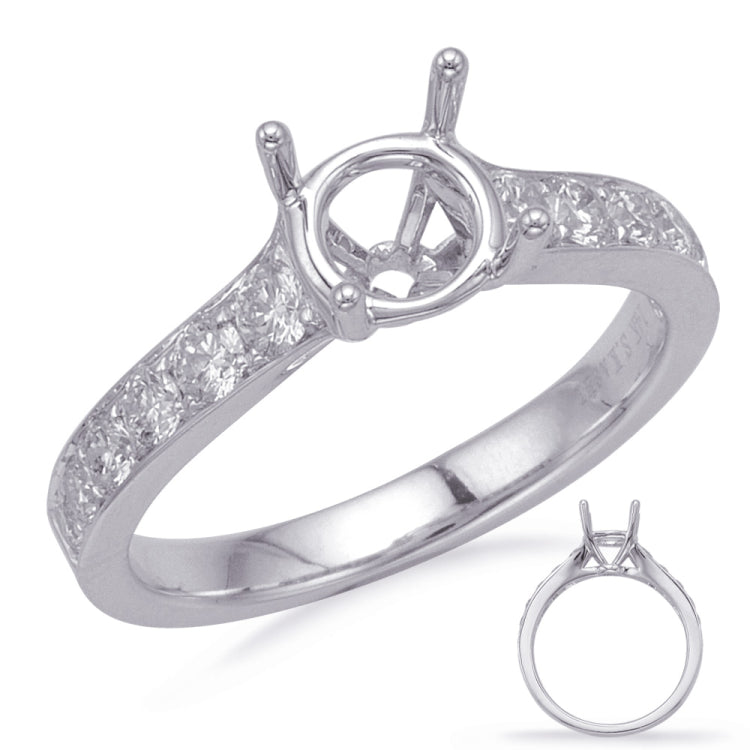 This Engagement Ring is available in 14K White Gold. There are a total of 12 stones. There are Rounds with a total carat weight of 0.55 set in a Channel Set|Micro Prong setting.