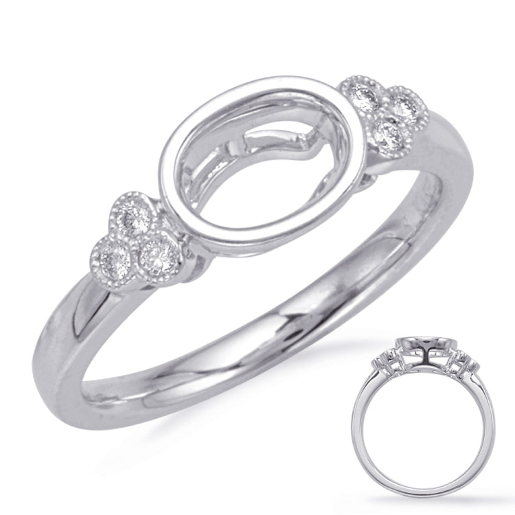 This engagement ring is available in 14K White Gold. There are a total of 6 stones. There are Rounds with a total carat weight of 0.08 set in a Bezel Set setting.