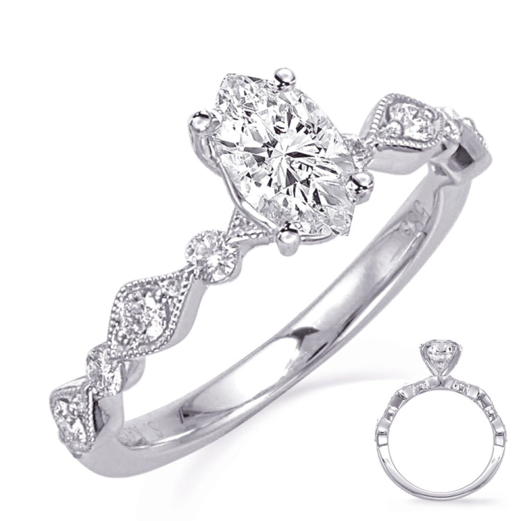 This engagement ring is available in 14K White Gold. There are a total of 8 stones. There are Rounds with a total carat weight of 0.27 set in a Prong Set setting.