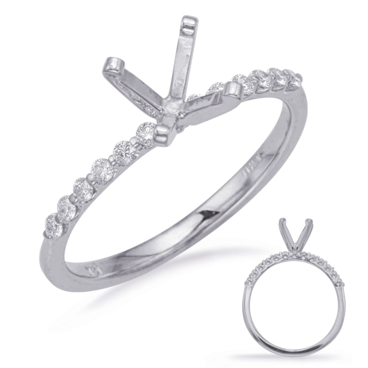 This engagement ring is available in 14K White Gold. There are a total of 12 stones. There are Rounds with a total carat weight of 0.16 set in a Micro Prong setting.