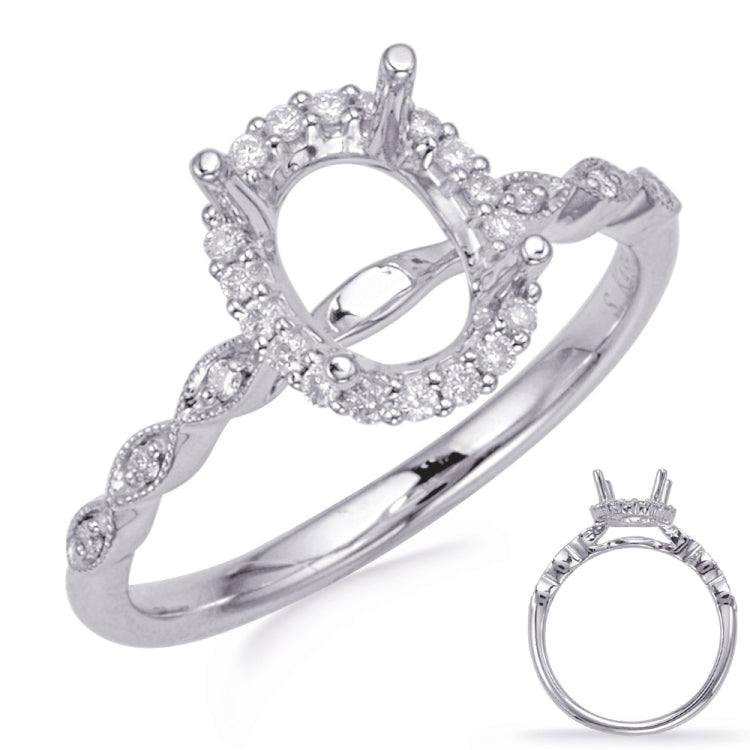 This engagement ring is available in 14K White Gold. There are a total of 26 stones. There are Rounds with a total carat weight of 0.15 set in a Micro Prong|Prong Set setting.