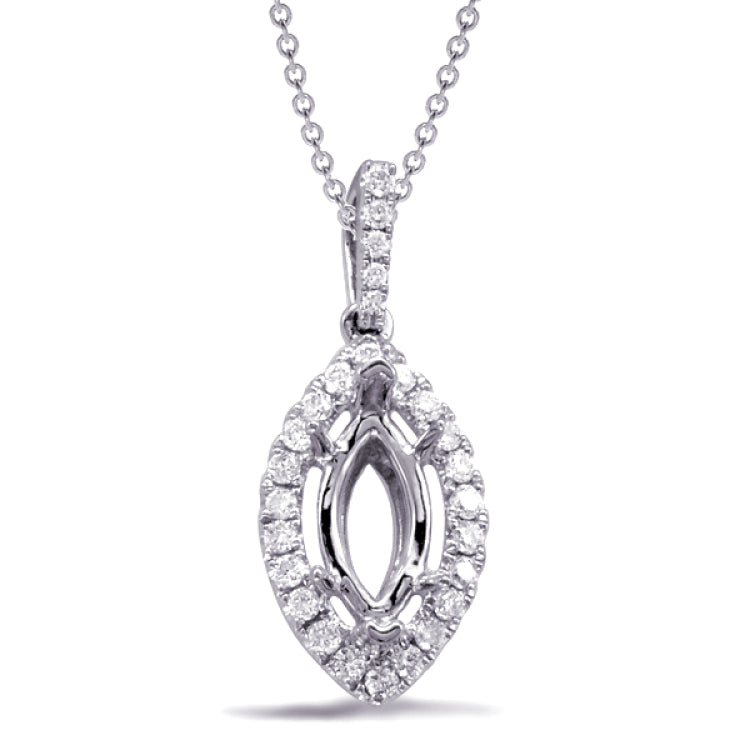 This pendant is available in 14K White Gold. There are a total of 27 stones. There are Rounds with a total carat weight of 0.16 set in a Micro Prong setting.