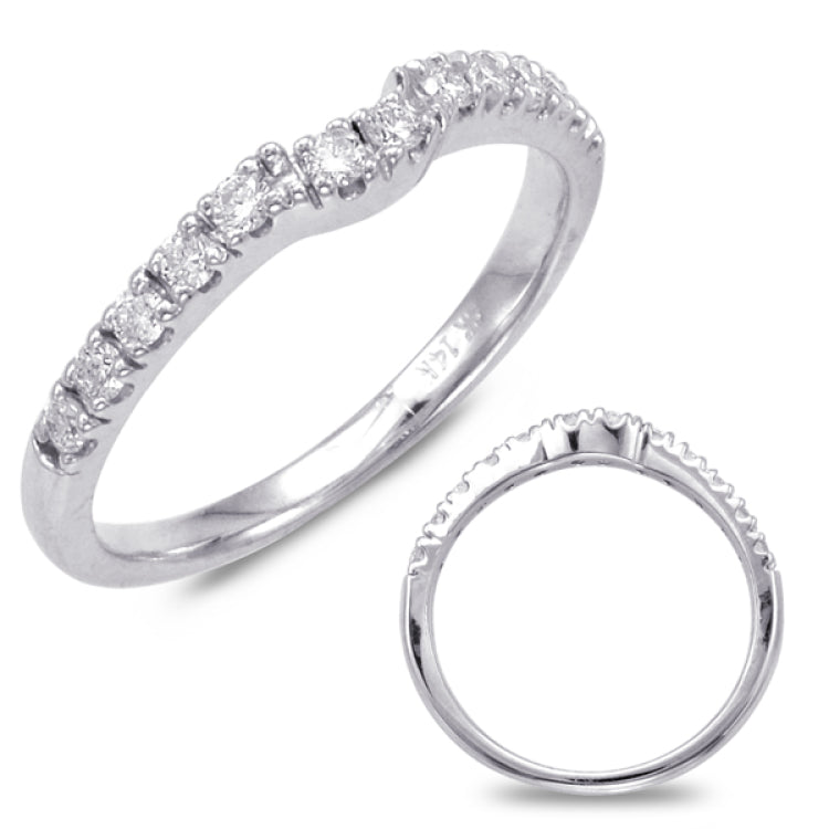 This Band is available in 14K White Gold. There are a total of 12 stones. There are Rounds with a total carat weight of 0.26 set in a setting.