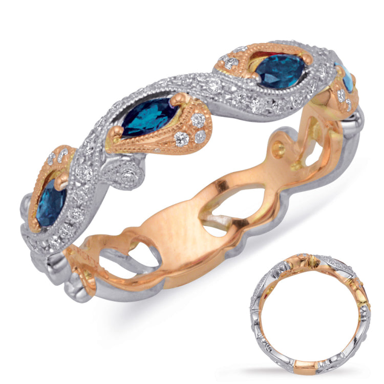 This Gem Stone Ring is available in 14K Rose & White Gold. There are a total of 43 stones. There are Rounds with a total carat weight of 0.17 set in a Micro Prong|Prong Set setting.
