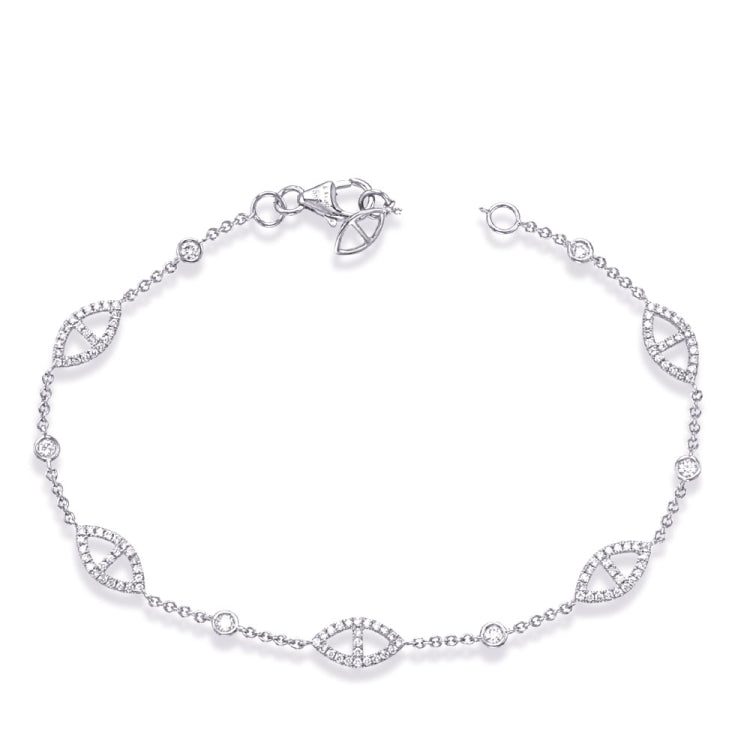 This Bracelet is available in 14K White Gold. There are a total of 121 stones. There are Rounds with a total carat weight of 0.45 set in a Micro Prong setting.