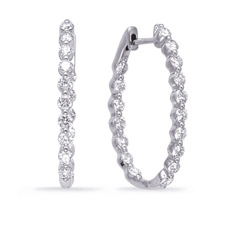 This Earing is available in 14K White Gold. There are a total of 34 stones. There are Rounds with a total carat weight of 1.72 set in a Shared Prongs setting.