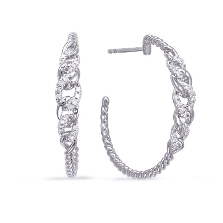 This Earing is available in 14K White Gold. There are a total of 48 stones. There are Rounds with a total carat weight of 0.16 set in a Micro Prong setting.