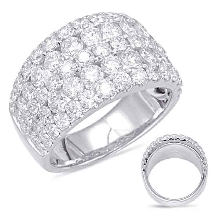 This Fashion ring is available in 14K White Gold. There are a total of 71 stones. There are Rounds with a total carat weight of 3.09 set in a Channel Set|Prong Set setting.
