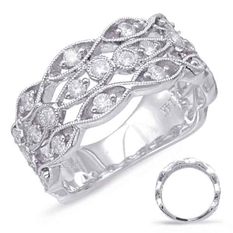 This Fashion ring is available in 14K White Gold. There are a total of 24 stones. There are Rounds with a total carat weight of 0.66 set in a Bezel Set|Prong Set setting.There are stones with a total carat weight of 0 set in a Bezel Set|Prong Set.