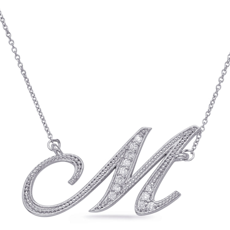 14 KT Rounds Shape White Gold Diamond Initial M Pendant