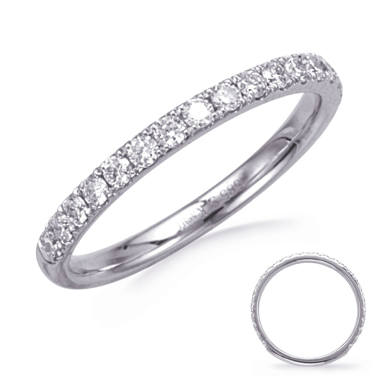 This Band is available in 14K White Gold. There are a total of 25 stones. There are Rounds with a total carat weight of 0.53 set in a Prong Set setting.