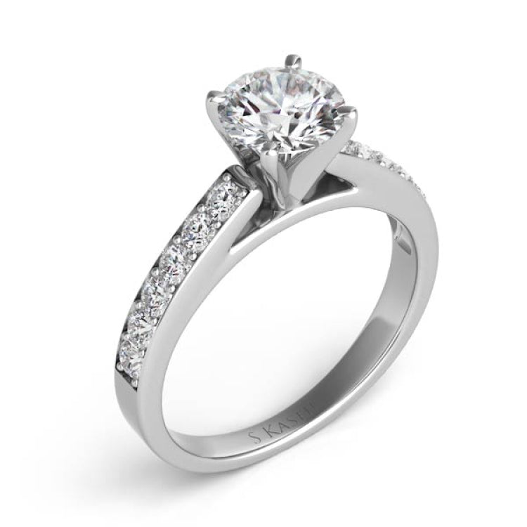 This Engagement ring is available in 14K White Gold. There are a total of 12 stones. There are Rounds with a total carat weight of 0.41 set in a setting.