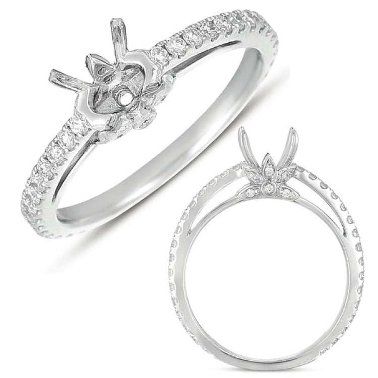This Engagement ring is available in 14K White Gold. There are a total of 44 stones. There are Rounds with a total carat weight of 0.45 set in a setting.