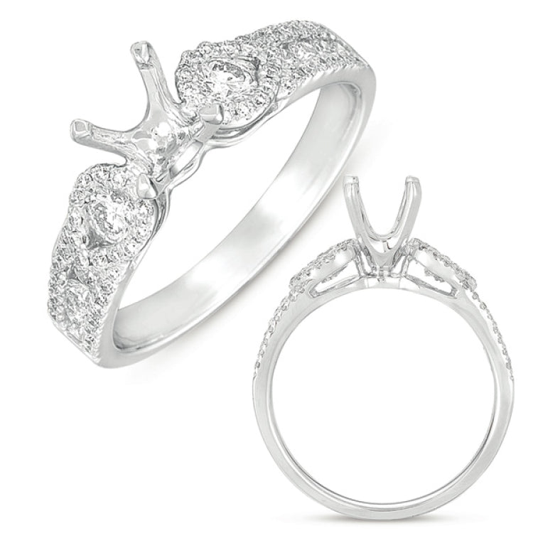 This Engagement ring is available in 14K White Gold. There are a total of 70 stones. There are Rounds with a total carat weight of 0.5 set in a setting.