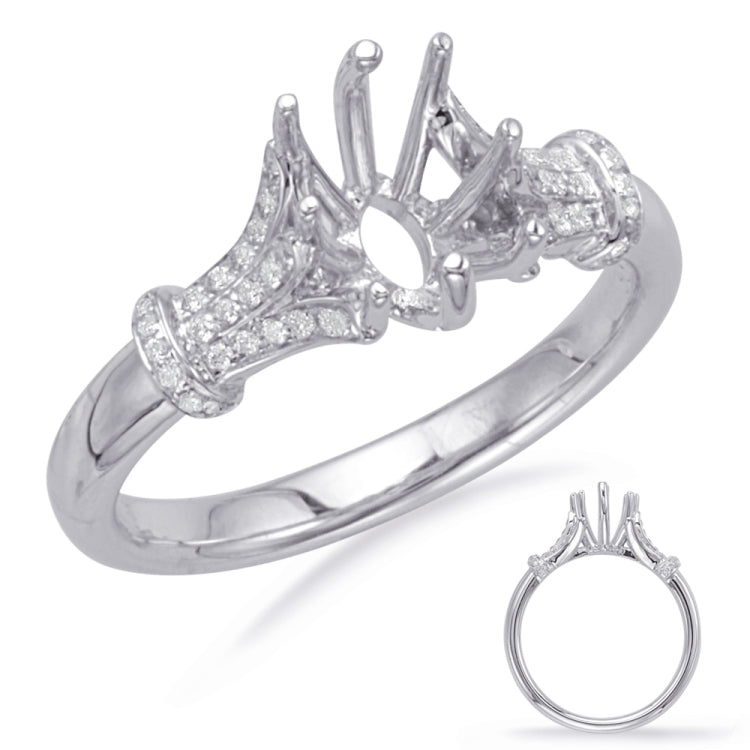 This Engagement ring is available in 14K White Gold. There are a total of 48 stones. There are Rounds with a total carat weight of 0.14 set in a Micro Prong setting.