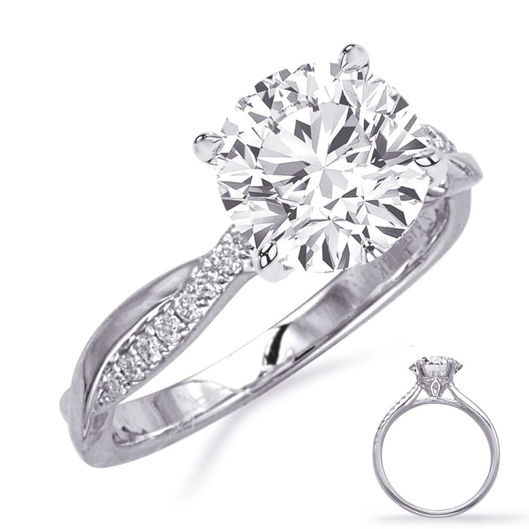 This Engagement ring is available in 14K White Gold. There are a total of 34 stones. There are Rounds with a total carat weight of 0.17 set in a Micro Prong setting.