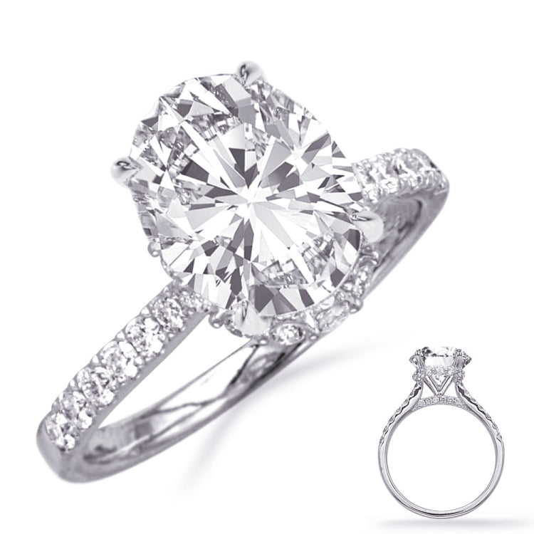 This Engagement ring is available in 14K White Gold. There are a total of 40 stones. There are Rounds with a total carat weight of 0.5 set in a Micro Prong|Prong Set setting.