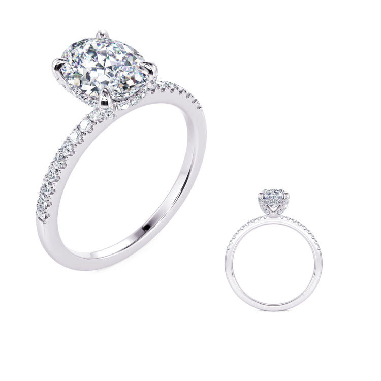 This Engagement ring is available in 14K White Gold. There are a total of 48 stones. There are Rounds with a total carat weight of 0.34 set in a Micro Pave setting.