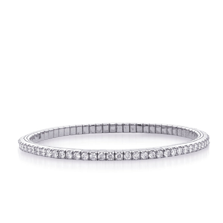 This Bracelet is available in 14K White Gold. There are a total of 73 stones. There are Rounds with a total carat weight of 3.58 set in a setting.