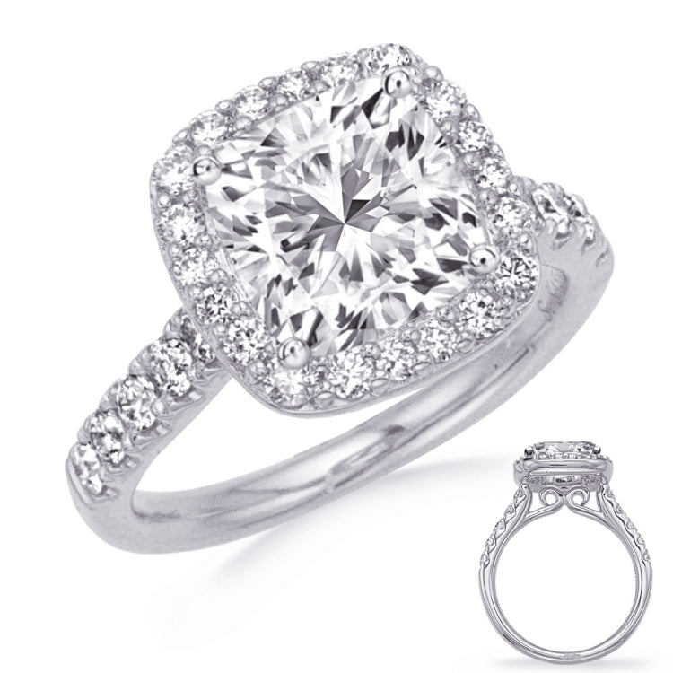 This Engagement ring is available in 14K White Gold. There are a total of 30 stones. There are Rounds with a total carat weight of 0.59 set in a Prong Set setting.
