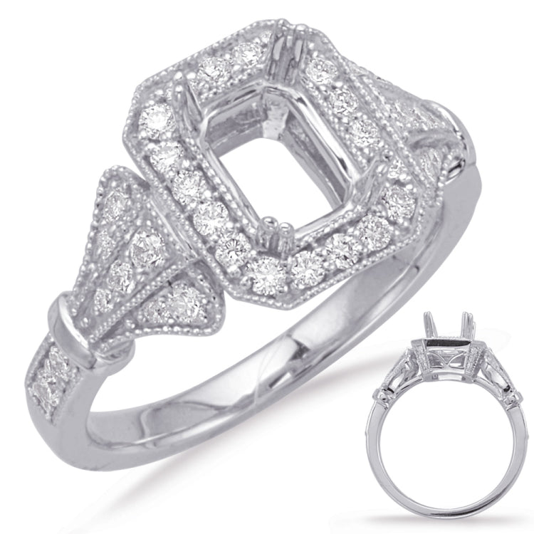 This Engagement ring is available in 14K White Gold. There are a total of 48 stones. There are Rounds with a total carat weight of 0.45 set in a Micro Prong|Shared Prongs setting.
