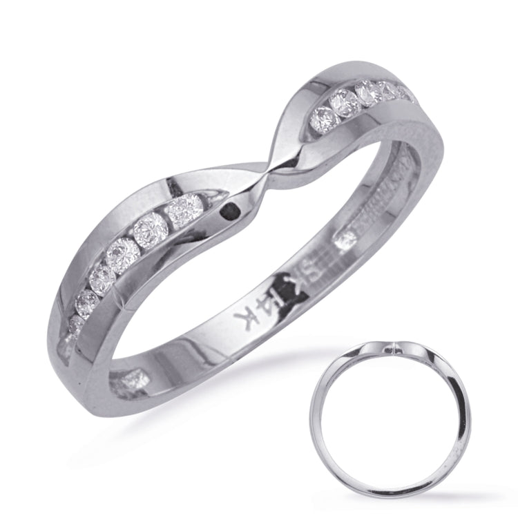 This Band is available in 14K White Gold. There are a total of 12 stones. There are Rounds with a total carat weight of 0.17 set in a Channel Set setting.