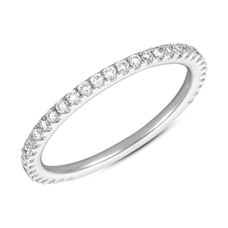 This Band is available in 14K White Gold. There are a total of 35 stones. There are Rounds with a total carat weight of 0.3 set in a setting.