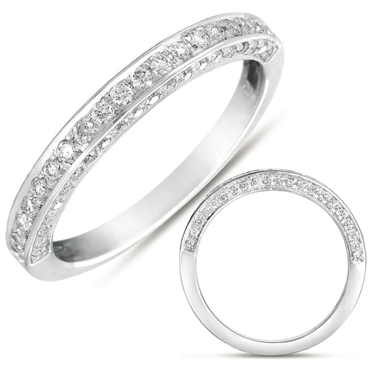 This Band is available in 14K White Gold. There are a total of 61 stones. There are Rounds with a total carat weight of 0.35 set in a Micro Pave setting.