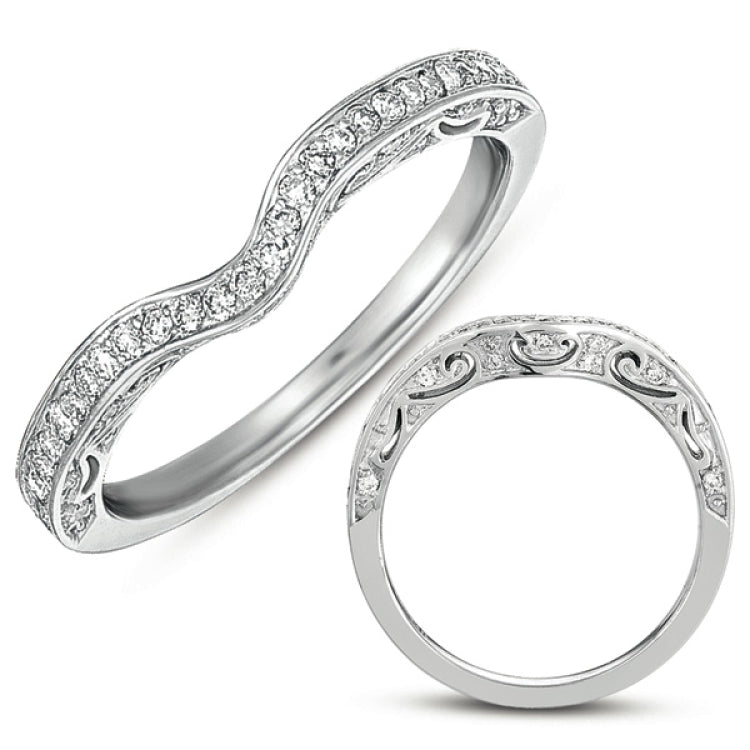 This Band is available in 14K White Gold. There are a total of 47 stones. There are Rounds with a total carat weight of 0.21 set in a Micro Pave setting.