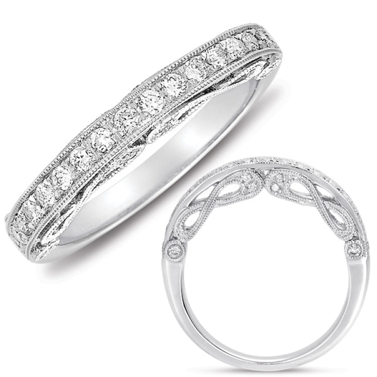 This Band is available in 14K White Gold. There are a total of 29 stones. There are Rounds with a total carat weight of 0.32 set in a Bezel Set|Micro Pave setting.