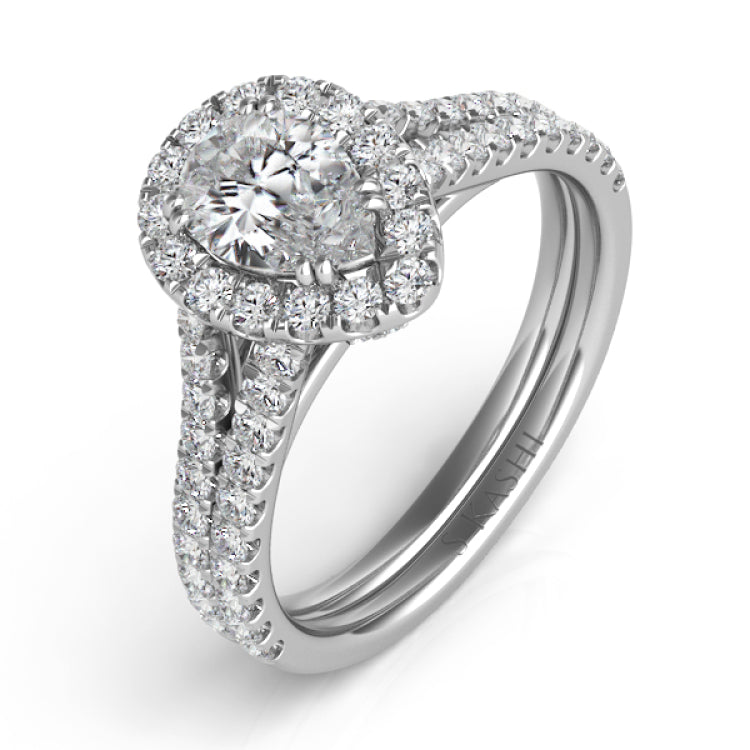 This Engagement ring is available in 14K White Gold. There are a total of 63 stones. There are Rounds with a total carat weight of 0.72 set in a Micro Pave setting.