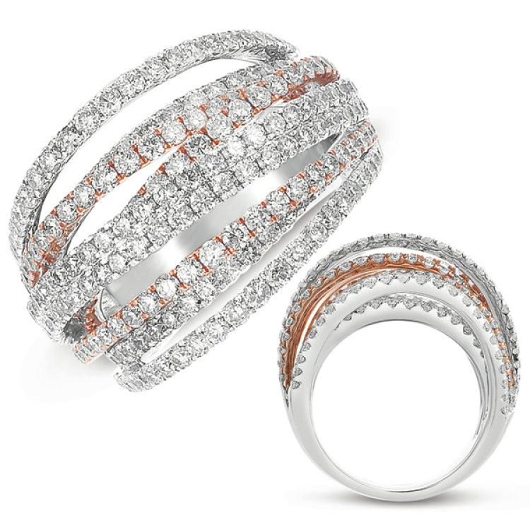 This Fashion ring is available in 14K Rose & White Gold. There are a total of 230 stones. There are Rounds with a total carat weight of 3.08 set in a Micro Pave|Micro Prong setting.There are stones with a total carat weight of 0 set in a Micro Pave|Micro Prong.